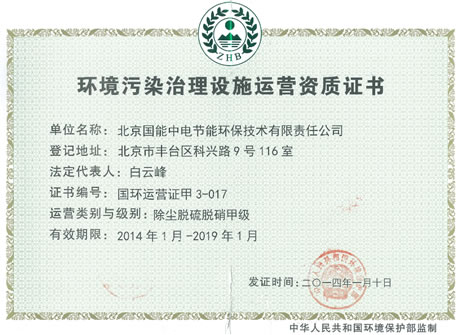 當前位置: 國能中電公司動態> 我司喜獲環保部《環境污染治理設施運營資質甲級證書》