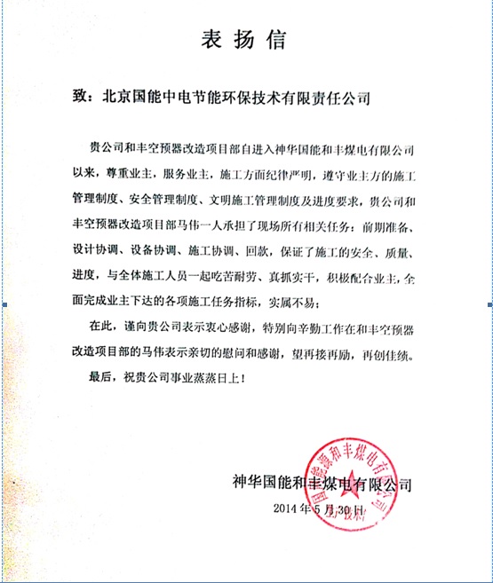 當前位置: 國能中電公司動態(tài)> 和豐空預(yù)器EPC改造項目搶工期保質(zhì)量贏業(yè)主贊譽